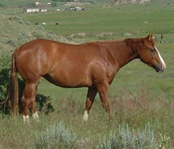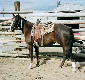 | Bred by Earl Lang of Frankston, Texas, and foaled in 1983, she was sold as a yearling to Lonnie and Barbara Allsup of the famous El Cid Ranch, whose brand she still carries. Trained and shown, she proved her quality and versatility. She earned a Register of Merit in 1987, and altogether has a total of 44 performance points in 4 events. She was shown and earned points in Cowhorse,Heeling, Heading, and Reining. |