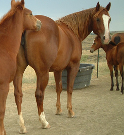 'Little Handy', aka Royal Mis Badger, was ridden and she is very kind and talented. Right now she is proving her value as a broodmare as you can see. Her first filly by this cross was lost to a mountain lion. Handle Bar Doc is listed as #18 in the 2007 Equistat Top 50 Maternal Grandsires in Reined Cow Horse Statistics, and, along with both Peppy San Badger and Colonel Freckles, Handle Bar Doc is also in the AQHA Hall of Fame, and he is also the only World Champion by Doc Bar!