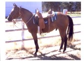 “Dually” is a professionally trained cutting horse and has shown in three major NCHA futurity events: Silverado on the Brazos, the Waco Futurity and the Abilene Spectacular. He is continuing his show career in Montana as a cutter, a reined cow horse, and a rope horse. He won Reserve in the 3500 Hackamore Stallion Stakes class at the Montana Reined Cow Horse Futurity in 2004.